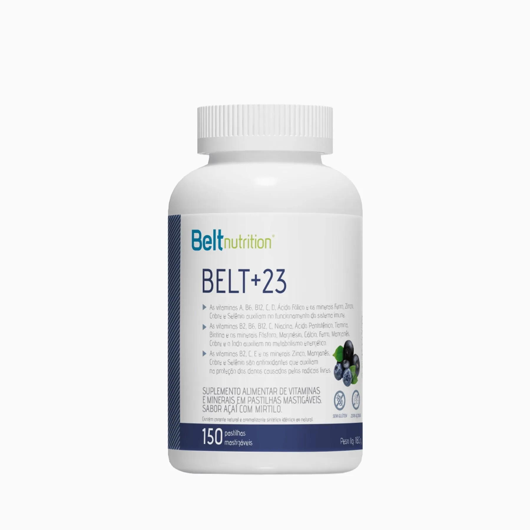 Multivitamínico - Belt +23 Mastigável - BELT NUTRITION É um dos mais completos e balanceados do mercado, possui 23 micronutrientes com minerais quelados e vitaminas na forma ativa. Na forma de mini pastilha mastigável, fica muito mais fácil e prático de usar, além de ter um sabor agradável. Os minerais são quelatos, o que favorece em até 90% a absorção. Não contém açúcar. *Produtos NÃO testados em animais. Benefícios de cada vitamina e mineral:Vitamina A Auxilia na visão; Auxilia no funcionamento do sistema imune; Auxilia no metabolismo para melhor absorção do ferro; Contribui para a manutenção da pele saudável; Vitaminas do Complexo B Fornecem energia celular para aumento de disposição, concentração, memória; Auxiliam no metabolismo de proteínas, gorduras e carboidratos. Auxiliam na formação de células vermelhas do sangue; Antioxidantes que auxiliam na proteção dos danos causados pelos radicais livres; Auxiliam no funcionamento do sistema imune; Contribui para a manutenção saudável do cabelo e da pele; Auxiliam na formação do tubo neural do feto durante a gravidez; Vitamina C Auxilia na absorção do ferro dos alimentos; É um antioxidante que auxilia na proteção dos danos causados pelos radicais livres; Auxilia no funcionamento do sistema imune. Melhora aspecto da pele e unhas. Vitamina D Auxilia na formação de dentes e ossos Auxilia na absorção de cálcio e fosforo; Vitamina E É um antioxidante que auxilia na proteção dos danos causados pelos radicais livres; Cálcio Mineral importante para saúde óssea e muscular Ferro Auxilia na formação de células vermelhas do sangue; Magnésio Auxilia no metabolismo de proteínas, gorduras e carboidratos; Auxilia na formação de dentes e ossos; Auxilia no metabolismo energético; Auxilia no equilíbrio dos eletrólitos; Auxilia no funcionamento muscular; Auxilia no processo de divisão celular. Selênio É um antioxidante que auxilia na proteção dos danos causados pelos radicais livres; Zinco É um antioxidante que auxilia na proteção dos danos causados pelos radicais livres; Auxilia na visão; Auxilia absorção da vitamina A; Contribui para a manutenção do cabelo, da pele e das unhas. Auxilia no funcionamento do sistema imune.