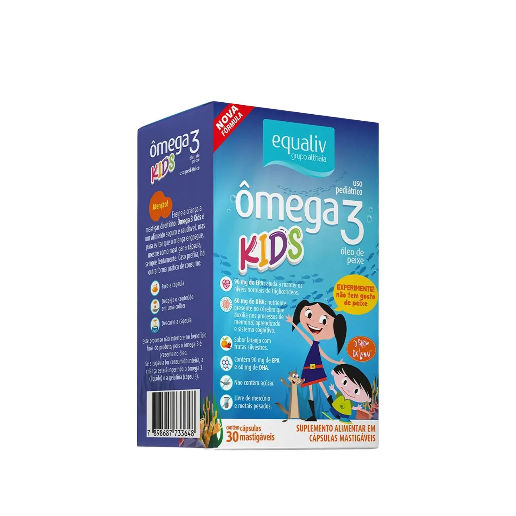 Equaliv Ômega 3 Kids Oil é um suplemento à base de óleo de peixe, em cápsulas mastigáveis sabor laranja, recomendado para o público infantil. Equaliv Ômega 3 Kids Oil é um produto que faz a diferença no mercado de óleo de peixe. Apresentado em cápsulas mastigáveis e com sabor laranja, a adesão pelo público infantil é grande. Uma facilidade para os pais e profissionais da saúde que veem o Ômega 3 (EPA e DHA) como uma oportunidade de suplementar com saúde a vida dos pequenos, garantindo benefícios a eles, como: auxílio no melhor crescimento e desenvolvimento do cérebro e do sistema visual, efeitos cognitivos benéficos, agregando para a saúde cardiovascular e outros.